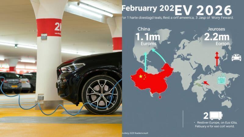 Worldwide electric vehicle sales totaled 1.1 million in February 2026, with an annual and sequential drop, while Europe grows supported by subsidies.