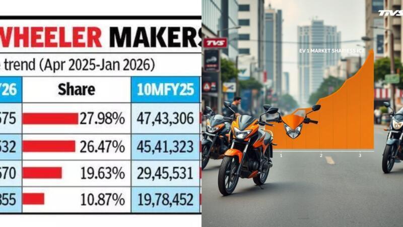 In comparison, peers registered a drop in market share over the 10 months of the current fiscal period. Hero MotoCorp fell to 27.98% versus 28.64%, and Honda Motorcycle & Scooter India declined to 26.47% from 27.43%. Bajaj Auto held a market share of 10.87%, compared to 11.95%, according to SIAM data. TVS has also been strengthening its presence in the electric vehicle segment, with its EV market share rising from about 20% a year ago to nearly 25% today; Bajaj maintained a position around 20%, while Hero MotoCorp expanded its presence to about 10% from 4% last year, based on Vahan data.